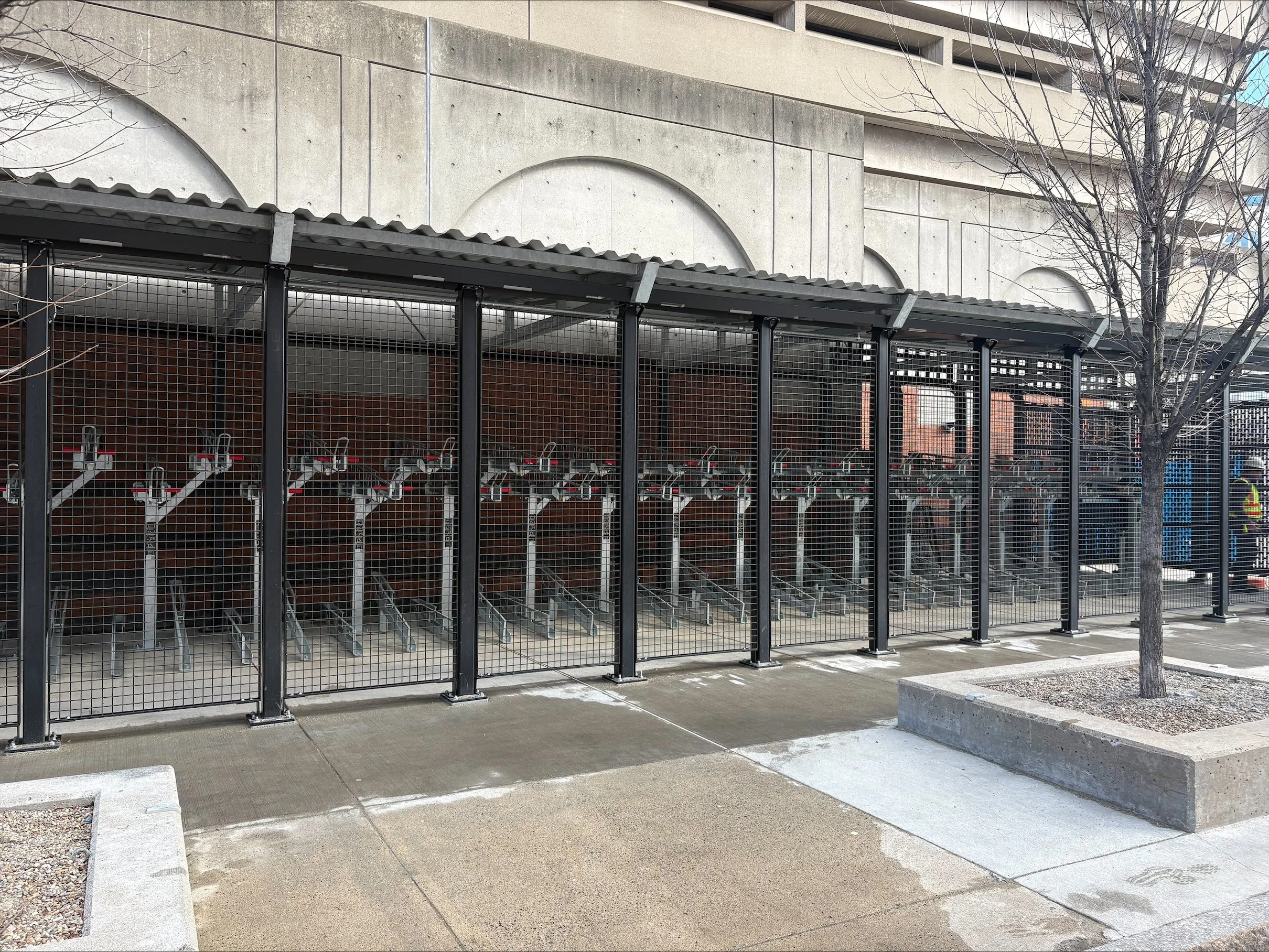 Bikes that are stored in the existing bike cage have been tagged to inform owners about transitioning to the new bike cage once it is available. The existing bike cage will be closed two weeks after the new cage opens, allowing crossover time for riders to access both cages.